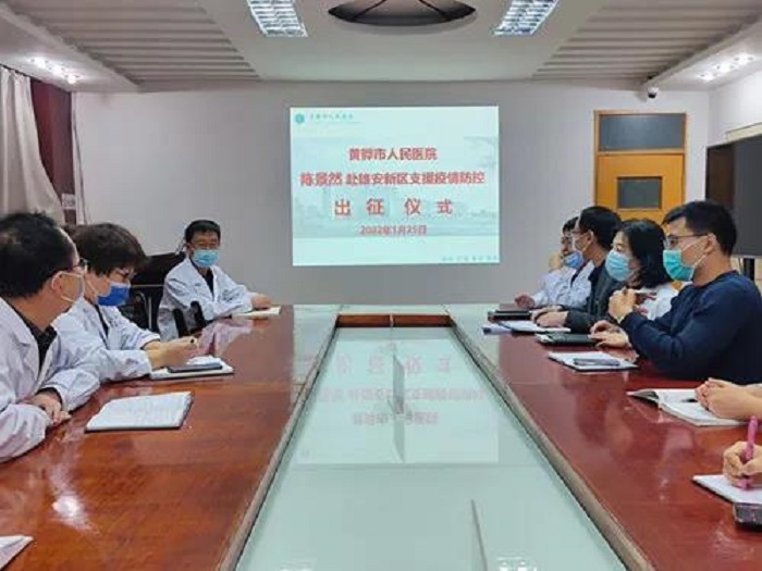 陈景然同志表示:一定不辜重托,不负使命,坚决服从安排,规范技术操作,保证圆满完成核酸检测任务。欢迎仪式结束后,陈景然同志和其他兄弟医院派出的队员在市卫健局集结,即刻奔赴雄安一线。